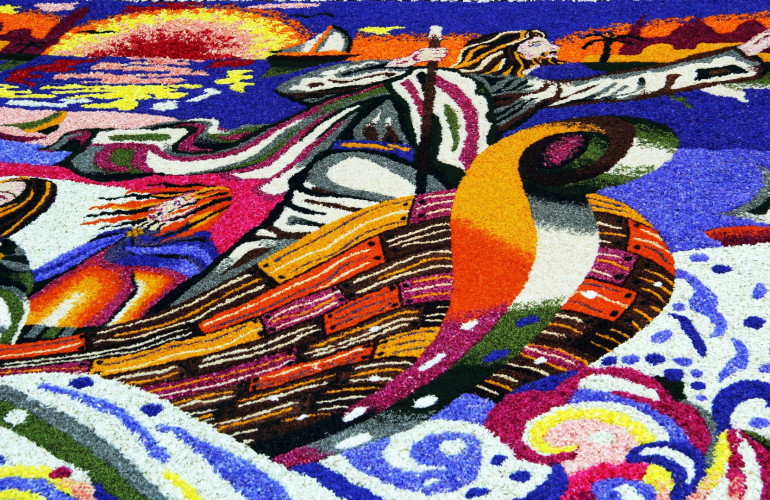 Nella foto: un esempio di Infiorata del Corpus Domini di Spello (Perugia, Umbria del Nord).
