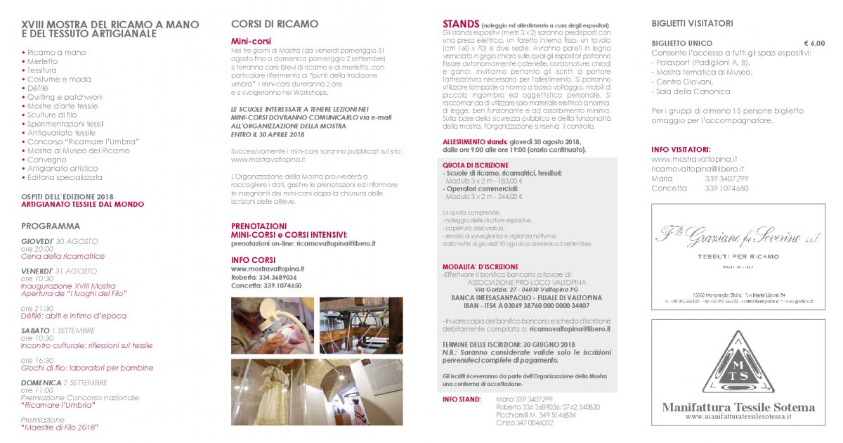 Programma della "Mostra del ricamo a Mano e del Tessuto artigianale” di Valtopina (Perugia) - edizione 2018
